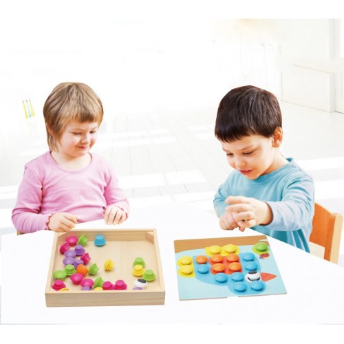 Joc mozaic din lemn cu pioneze din plastic